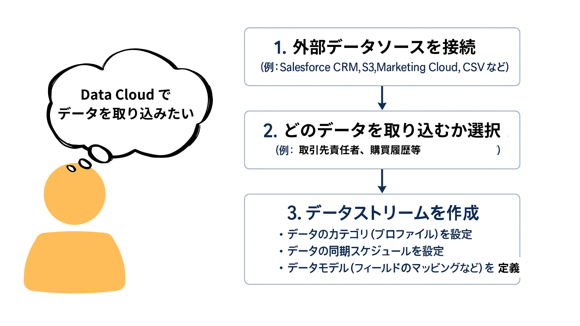 Data Cloud でデータを取り込む際には「データストリーム」を作成することが必要。